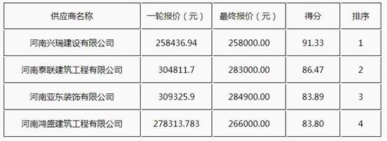 3、采购人确认成交供应商:河南兴瑞建设有限公司,成交金额:258000.00元,地址:安阳市紫薇大道中段268-3号。