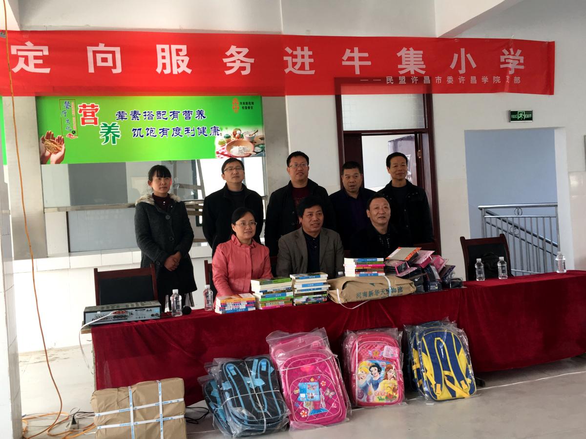 为发挥民盟自身优势,积极服务地方,助力脱贫攻坚,在前期调研的基础上,11月23日下午,民盟永利集团3044官网欢迎您支部赴鄢陵县马栏镇牛集小学开展定向服务活动。