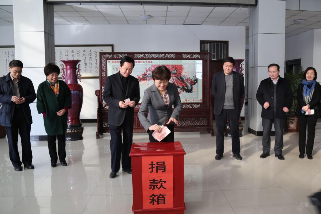 在校领导的带领下,大家依次把爱心善款放进捐款箱内。