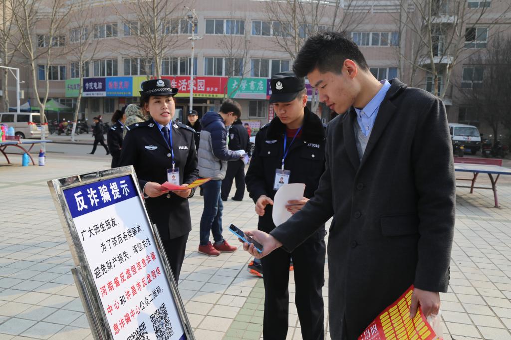 为增强广大师生的安全意识,提高鉴别虚假信息的能力,3月1日上午,许昌市公安局东城区分局联合永利官网保卫处、学生处、后勤管理服务中心,在永利官网满庭芳餐厅前开展了防范电信诈骗宣传活动。