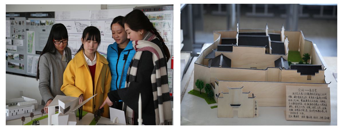 在综合实验楼403教室,风景园林专业老师李满园正在与学生们交流他们的作业作品。开学第一天,城乡规划与园林学院风景园林专业开展了学生作品展活动,把学生们上学期的作业作品集中展示,供全校师生参观。李满园老师介绍说:“这既是学生们学习成果的展示,是各级学生相互交流的重要平台,有助于学生对本专业有整体性和前瞻性的把握认识,促使他们在新学期的学习中有的放矢。其中探讨城市遗产保护与发展的作品,则希望进一步增强广大师生对城市遗产的保护意识。