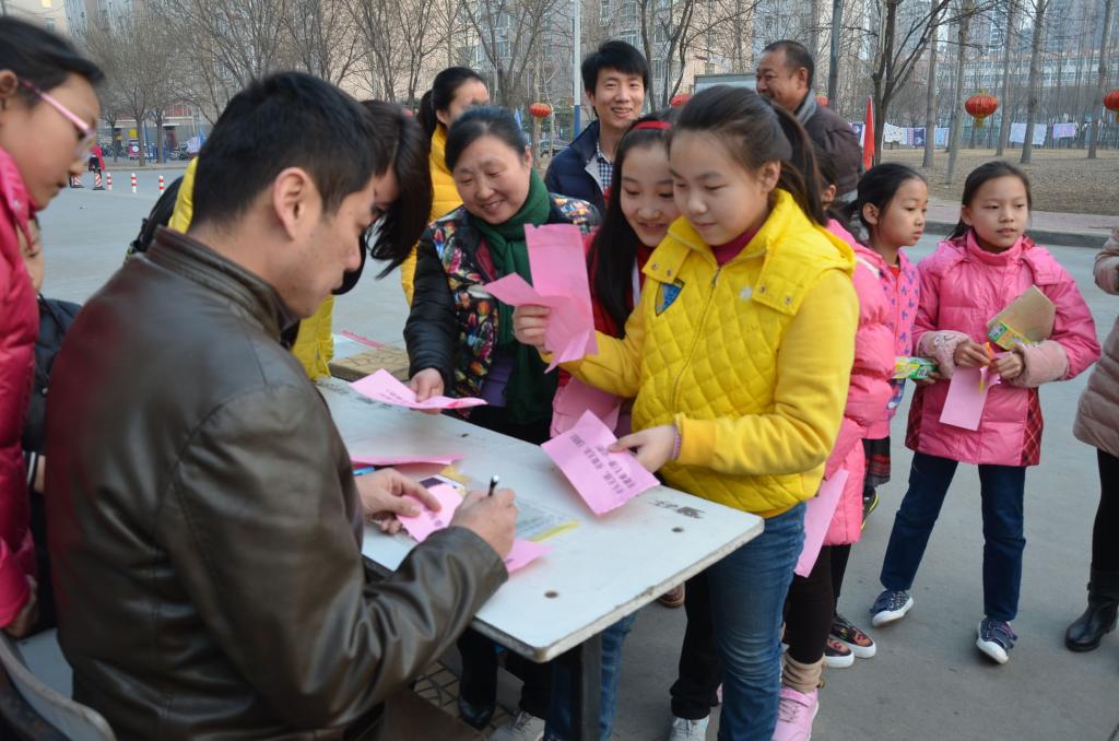 虽然二月的初春还透着一丝寒气,但是家属区却温暖异常,元宵节灯谜会正在如火如荼地进行。走进活动现场,红色灯谜便映入眼帘。灯谜前站满了猜谜的老师与孩子们,大伙议论纷纷,摩拳擦掌跃跃欲试。工作人员介绍完活动规则后,元宵节猜灯谜活动正式开始。参加活动的人们使出了浑身解数,有的在认真思考,有的全家总动员,一家老小齐上阵动脑猜灯谜。