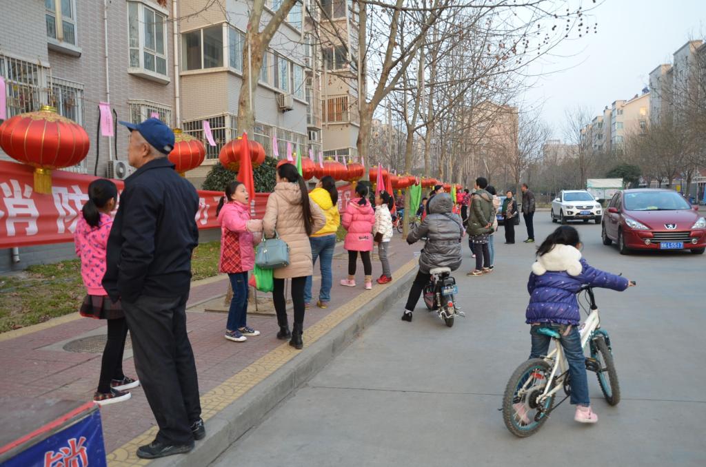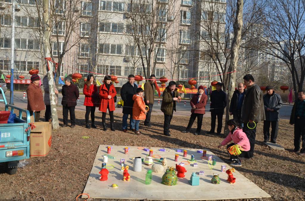 今年正月初一、初五、正月十四,家属区都举办了热闹的游园活动。游园活动形式多样,精彩纷呈,跳大绳、套圈等趣味性的竞技活动吸引着老师们与孩子们。这里不仅成了儿童的乐园,而且也成了成人回味童趣的地方,人们闹着、笑着、玩着,充满了欢笑声。
