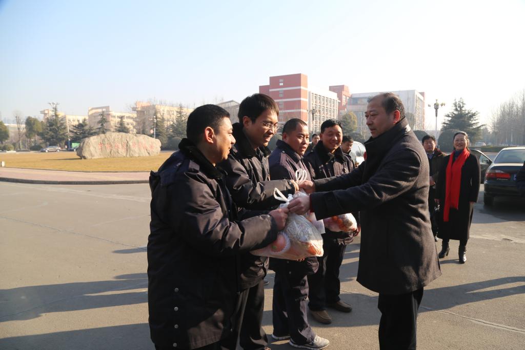 崔斌副院长一行先后前往学校门岗、学生宿舍区等,与坚守在岗位上的工作人员亲切握手,向他们送上节日慰问品和新春的祝福,感谢他们的辛勤劳动。受慰问人员感谢学校领导的亲切关怀,纷纷表示要恪尽职守,保质保量地完成春节期间的工作任务,为营造一个安全、稳定、整洁、和谐的校园作出贡献。(摄影:宁智沛)