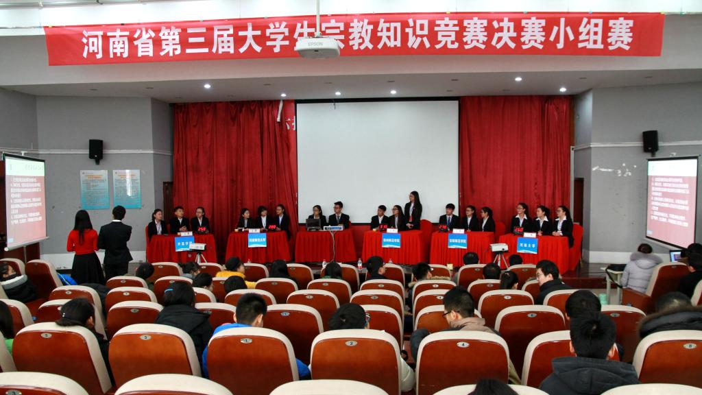 11月,我省启动高校第三届大学生宗教知识竞赛,竞赛分为全省各高校校内选拔赛、片区复赛、决赛三个阶段。本次全省总决赛由中共河南省委高校工委、中共河南省委统战部、河南省教育厅、河南省宗教局主办,河南财经政法大学承办。活动启动以来,学校高度重视,精心安排,发放并组织师生学习宗教知识读本,先后开展了校内选拔赛和豫中南片区复赛。本次系列活动的成功举办,对于普及宗教知识,宣传国家有关法律法规,促进大学生树立马克思主义宗教观和学法遵法守法用法意识,提高学生正确认识和对待宗教问题的能力,防范和抵制邪教入侵,构建和谐校园起到了积极作用。(摄影:岳凯声)