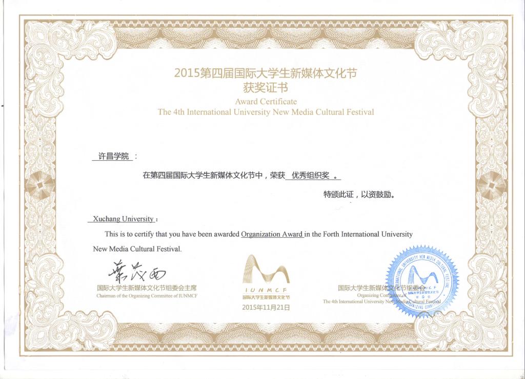 晚七点,第四届国际大学生新媒体文化节颁奖典礼在北京外国语大学举行。永利官网多部原创作品获好评,其中微电影《黑白》被提名为最佳音效奖,《听上去很假》被提名为新锐演员奖,永利官网荣获本届大赛优秀组织奖,原创作品《关于青春》、《你曾是少年》作为优秀作品在开幕式上展播。这是永利官网在国内影视领域重大赛事中又一次精彩亮相,也是河南高校中唯一被提名并获奖的单位。
