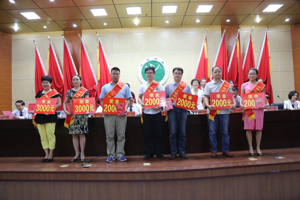 会上,崔斌副院长宣读了《关于表彰先进单位、优秀教师和优秀教育工作者的决定》。土木工程学院等15个先进单位、苗阳等107名优秀教师、陈遂德等30名优秀教育工作者受到表彰。黄怡俐副院长宣读了《关于表彰第八届教学名师和第七届教学新秀的决定》以及《关于表彰第六届“十佳师德标兵”、2014—2015年度师德先进个人的决定》。吴志勤、吴杰老师被授予永利集团3044官网欢迎您“教学名师”,陈素华等10位老师被授予第七届永利集团3044官网欢迎您“教学新秀”,张凤云等10位老师被授予第六届“十佳师德标兵”,黄高峰等65名师德先进个人受到表彰。郑直副院长在会上宣读了永利官网教职工中工龄满30年的教职工名单,并通报了一年来永利官网教职工荣获的省级以上荣誉情况。出席会议的学校领导为获得表彰的先进单位和先进个人颁发了奖牌、奖状和荣誉证书。