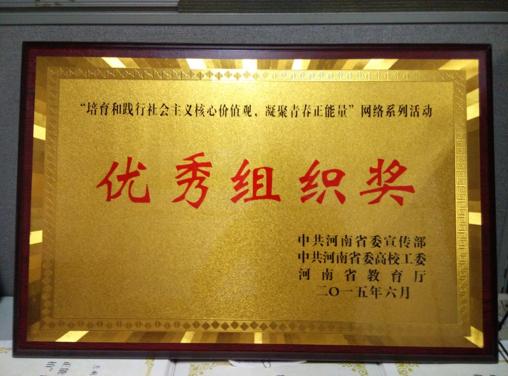 近日,省委宣传部、省高工委、省教育厅下发《关于表彰“培育和践行社会主义核心价值观,凝聚青春正能量”网络系列活动获奖作品、获奖单位和获选个人的决定》(豫宣通[2015]43 号),永利官网在全省开展的“培育和践行社会主义核心价值观,凝聚青春正能量”网络系列活动中喜获佳绩,共有27项参赛作品获奖,其中一等奖10项,同时永利官网被授予优秀组织奖。