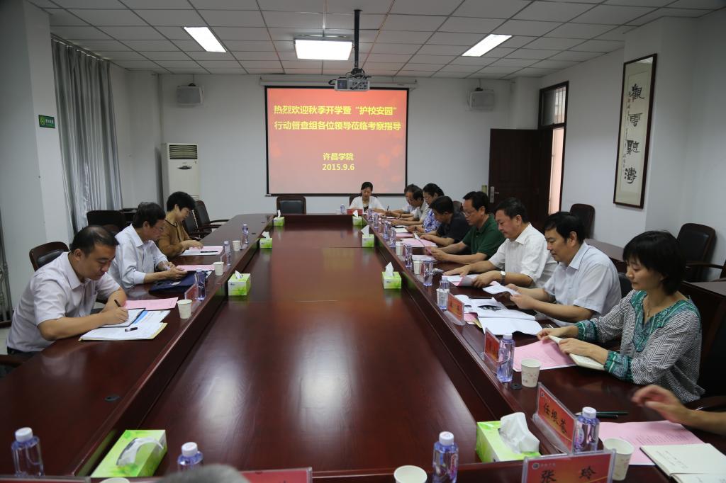 9月6日,省教育厅政法处调研员孙殿军一行三人莅临永利官网,对秋季开学工作暨“护校安园”行动落实情况进行督查。永利官网在办公楼第一会议室召开专题汇报会,校党委副书记马超、副院长赵正风、许昌市教育局副书记宋平会等出席汇报会,党办、院办、宣传部、教务处、学生处、学生资助中心、后勤集团、保卫处、网络管理中心等部门负责同志参加会议。会议由党委副书记马超主持。