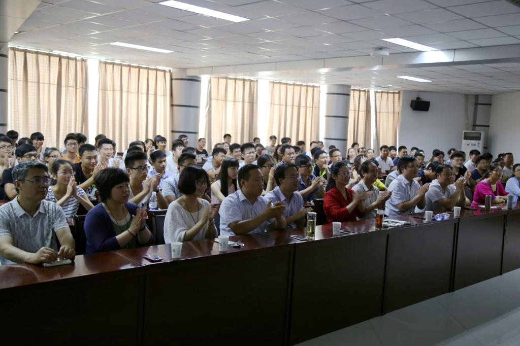 在隆隆的礼炮声和国旗仪仗队铿锵有力的脚步声中,直播会场一片庄严肃穆;礼炮声后,鲜艳的五星红旗在天安门广场冉冉升起,会场上也响起了师生们嘹亮的国歌声。阅兵场上方阵队伍朝气蓬勃的精神面貌、坚定豪迈的步伐、气势磅礴的空中梯队、引人瞩目的新式装备、雄浑激昂的国歌声和军乐声……使观看师生们的掌声、欢呼声不绝于耳,此起彼伏。大家纷纷为受阅方阵的精彩表现而喝彩,为祖国建设发展的巨大成就而自豪。