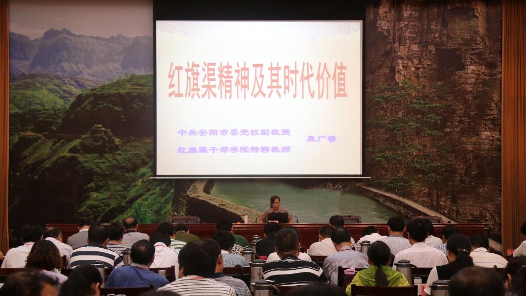 开班仪式后,培训班进行了红旗渠纪念馆现场观摩教学,观看了纪录片《红旗渠》,听取了《红旗渠精神及其时代价值》专题讲座,观看了话剧《红旗渠》音像教学。(摄影:岳凯声)