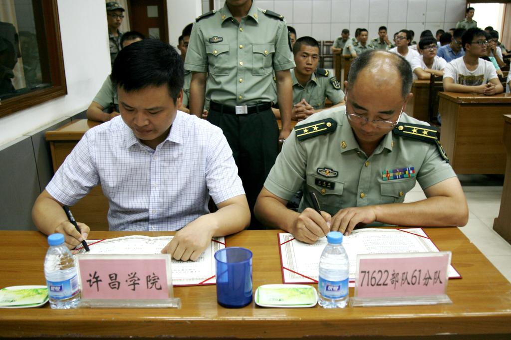 任宋龙江签署了共建共育协议。参加共建共育的军队英模单位和地方高校分别被中国人民解放军总政治部、共青团中央授牌“全国大学生社会实践基地”、“社会主义核心价值观军地共建共育基地”。