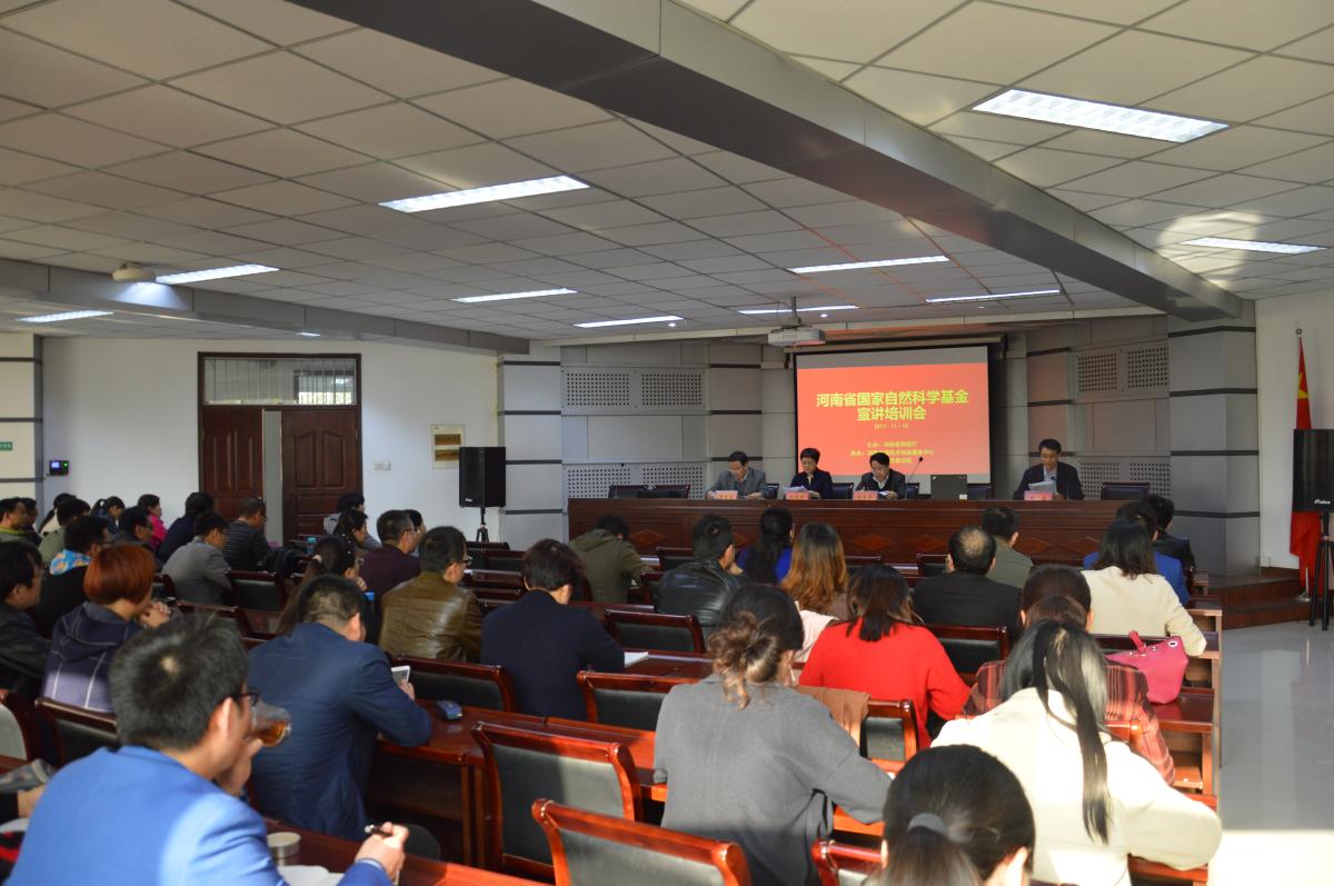 11月10日下午,永利官网在办公楼楼第三会议室召开河南省国家自然科学基金宣讲培训会暨学校2018年度国家自然科学基金项目申报动员会。院长赵继红、副院长郑直出席培训动员会,各理工科二级学院院长、分管科研副院长和全体教授、博士100余人参加了会议。会议由郑直副院长主持。