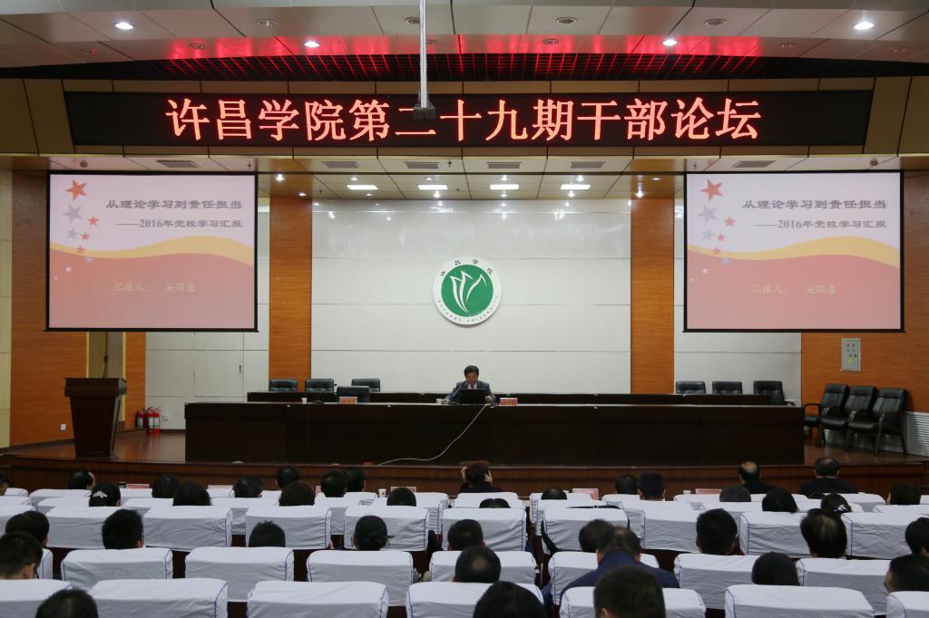 10月11日下午,永利官网在图书馆学术报告厅举行第二十九期“干部论坛”报告会。校领导赵继红、马超、赵正风、郑直、崔斌、黄怡俐、郭涛、杜志傲出席会议,全体中层领导干部、二级单位院长(主任)助理参加会议。报告会由党委组织部部长陈遂德同志主持。