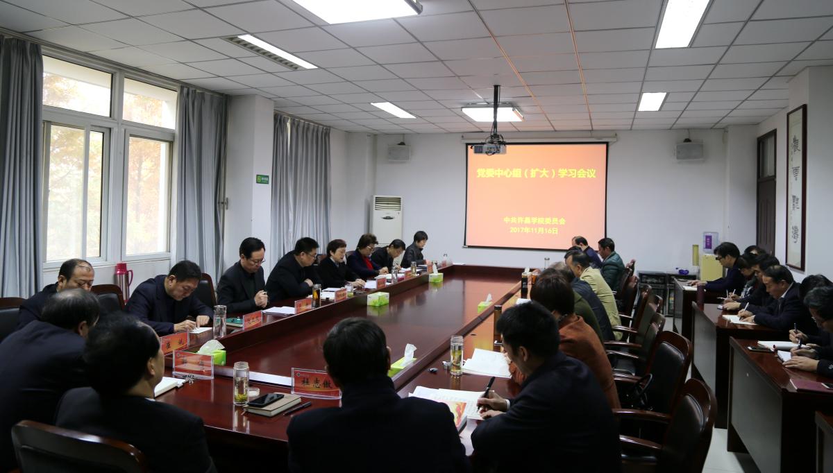11月16日,永利官网在办公楼第一会议室召开党委中心组(扩大)会议,学习宣传贯彻党的十九大精神。全体校级领导干部出席会议,各基层党委、党总支、直属党支部书记和相关职能部门负责人参加会议。院长赵继红、党委副书记马超、纪委书记罗凤英就学习十九大精神的认识和体会,结合实际工作在会上发言交流。会议由党委书记闫纪建主持。