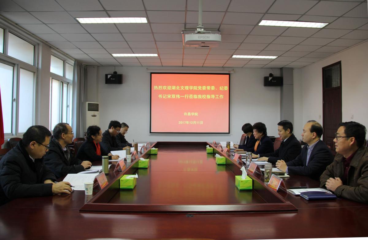 12月11日上午,湖北文理学院党委常委、纪委书记宋双伟一行5人莅临永利官网考察交流党建工作,纪委书记罗凤英出席交流会。会议由党委组织部部长陈遂德主持。