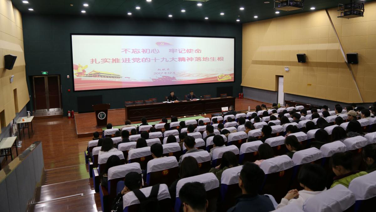 赵献东副部长以《不忘初心,牢记使命,扎实推进党的十九大精神落地生根》为题,从提升站位,充分认识党的十九大精神的重大意义;好好学习,深刻领会党的十九大精神的核心要义;结合实际,全力推进党的十九大精神的贯彻落实三个方面,深入浅出地阐述了党的十九大精神,并联系许昌改革发展的非凡成就,结合高校立德树人的根本任务作了一场精彩的专题报告。报告既有理论深度、思想深度,又有很强的针对性,对广大师生进一步学习宣传贯彻好党的十九大精神具有重要指导意义。
