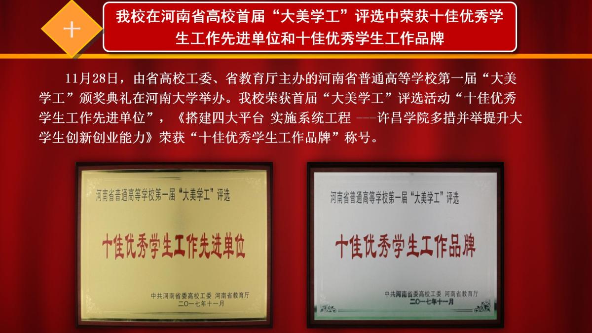 过去的一年,在省委省政府的正确领导下,在许昌市委市政府的大力支持下,学校紧紧围绕建设特色鲜明的高水平应用技术大学的奋斗目标,坚持走以“内涵提升、创新引领”为核心的转型发展之路,各项事业突飞猛进、成绩斐然。为更好地回顾总结一年来的发展成就,进一步激发广大师生干事创业的奋斗热情,凝聚改革发展的强大动力,党委宣传部(新闻中心)开展了永利集团3044官网欢迎您2017年度十大新闻事件和十大入围新闻事件评选活动。