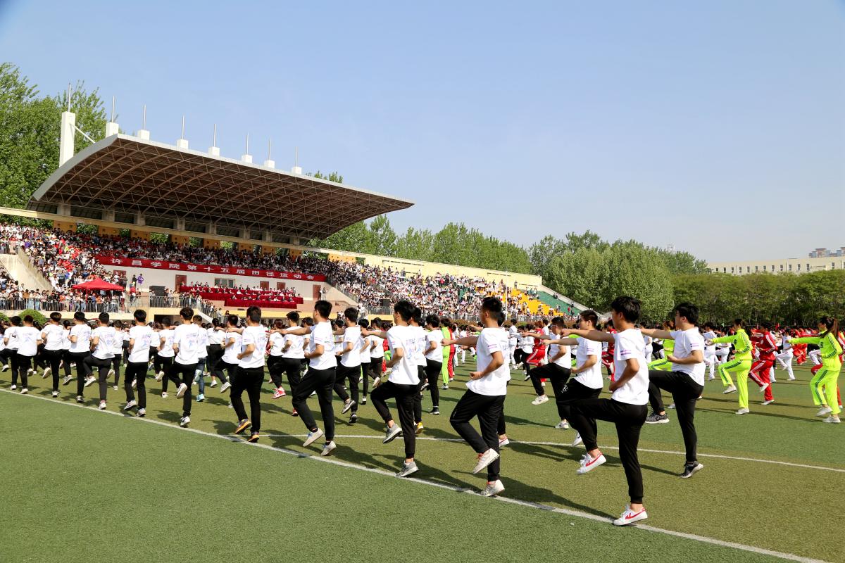 开幕式上,二级学院学生代表队进行了武术健身操“英雄少年”的比赛。