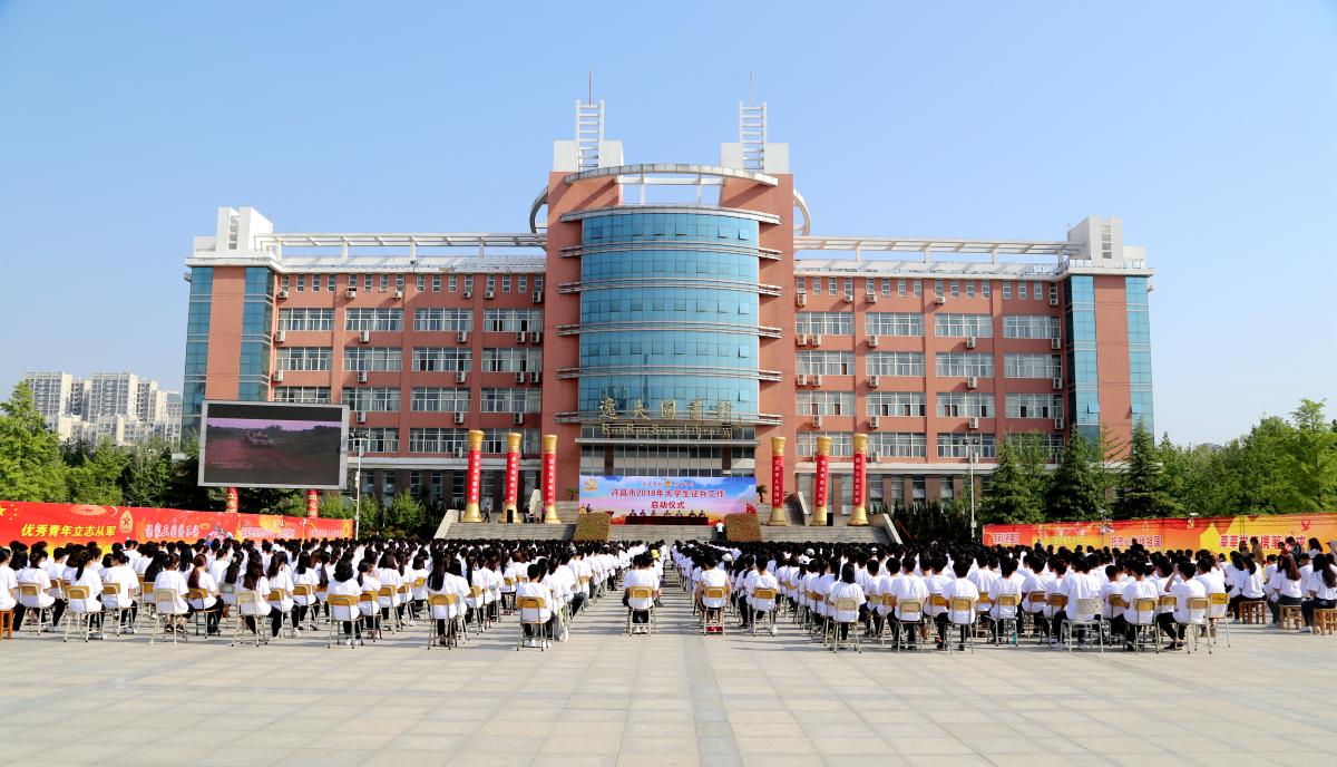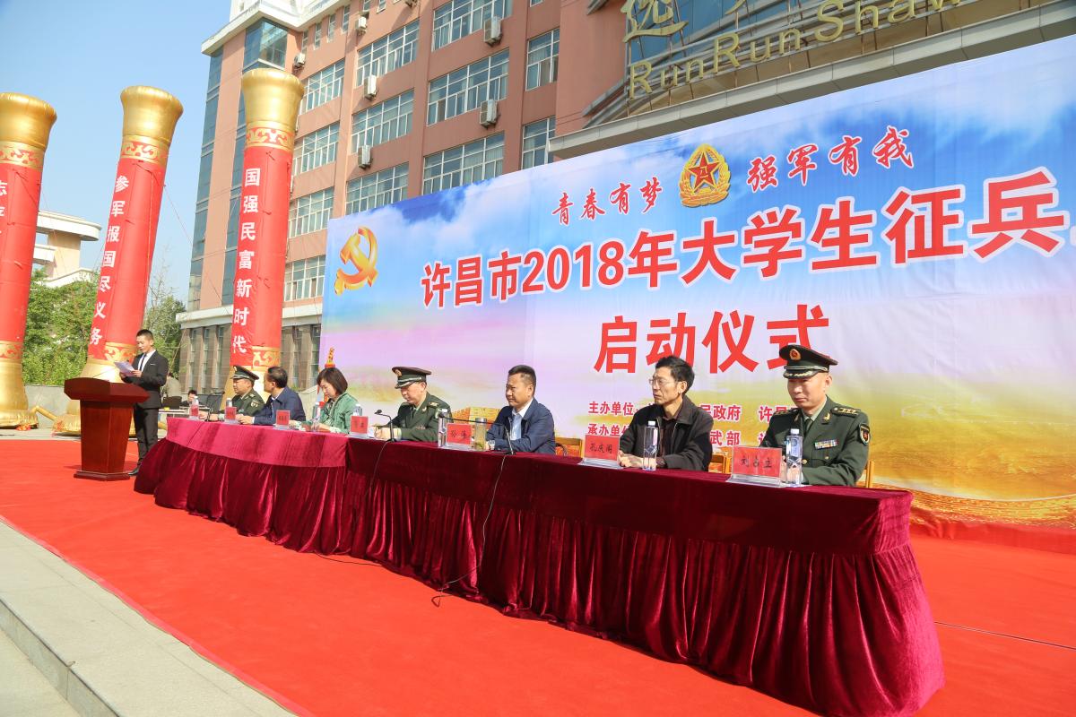 4月20日上午,许昌市2018年大学生征兵工作启动仪式暨工作部署会在永利官网举行。许昌市委常委、军分区政委冯奕,永利官网党委副书记孙海、许昌市政府副秘书长杨春香等出席。市委宣传部、市教育局、许昌军分区和许昌6县(市、区)的分管领导、人武部领导、许昌职业技术学院、许昌电气职业学院、许昌陶瓷职业学院和永利官网师生代表近2000人参加启动仪式。