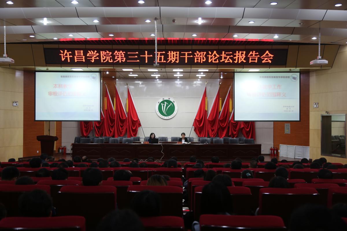 为进一步推动永利官网审核评估评建工作的深入开展,4月25日下午,永利官网在学术报告厅举行第三十五期干部论坛报告会。会议邀请华中农业大学副校长吴平教授作了“审核评估范围释义”的主题报告。校领导闫纪建、孙海、罗凤英、崔斌、黄怡俐、郭涛、高金星出席会议,全体中层干部和各个二级学院选派的教授、博士、教工党支部书记、系主任、教学秘书等相关人员与会听取了报告。报告会由黄怡俐副院长主持。