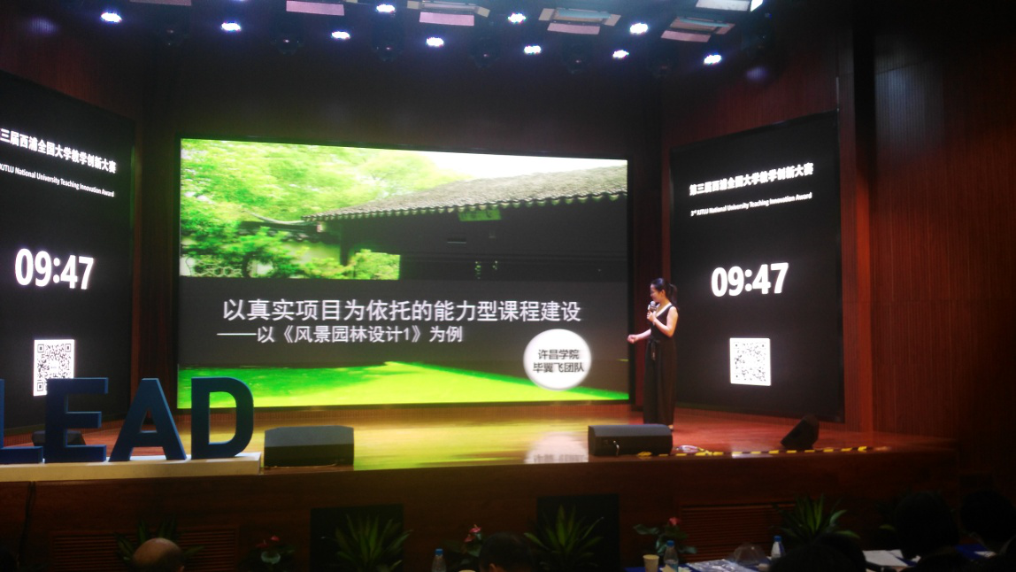 5月18日至20日,以“开展研究导向型教育,塑造学生创新创业精神”主题的第三届高等教育创新年会暨第五届慧湖高教国际化论坛在西交利物浦大学举行。论坛邀约数百位国内外大学教学管理者、教师以及产业界人士共同探讨如何通过研究导向型教育教学提升大学生创新创业能力和精神等问题。会议期间举行了第三届西浦全国大学教学创新大赛决赛及成果展示,通过激烈的角逐,永利官网城乡规划与园林学院教师毕翼飞带领的《风景园林规划与设计》课程教学团队荣获三等奖。