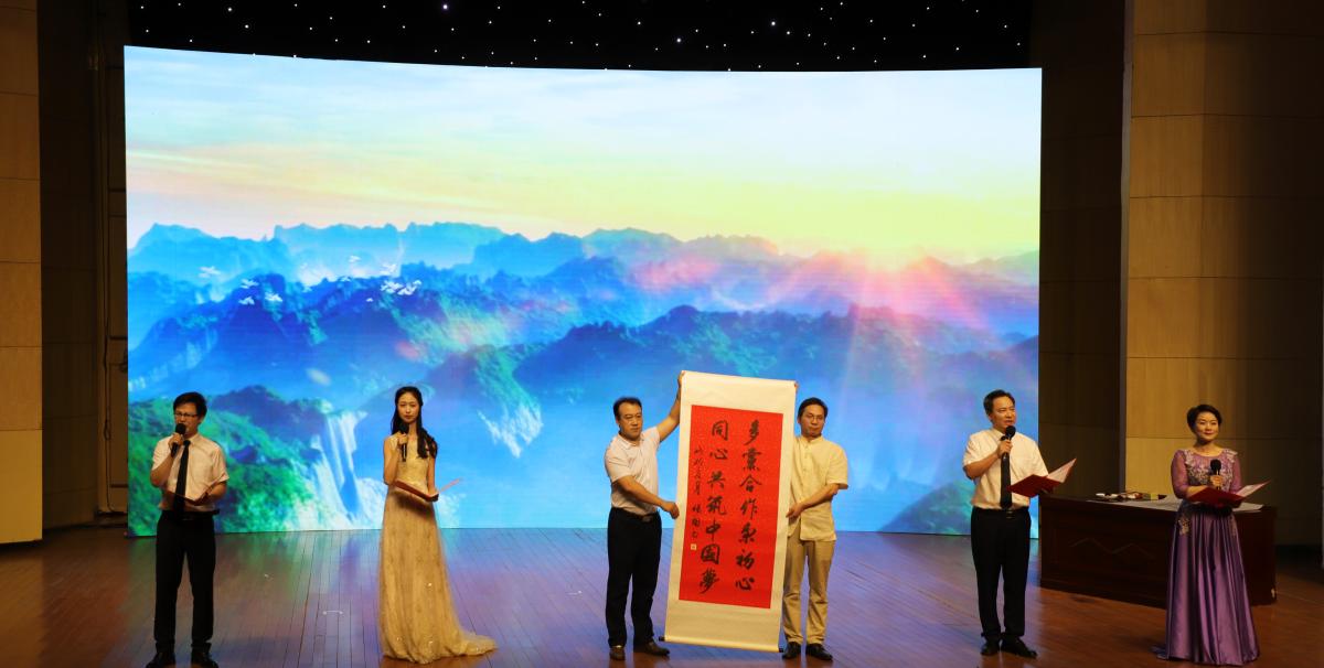 在决赛现场,经过初赛选拔的41所高校代表队都精心准备,所选送朗诵节目紧扣“跟党迈进新时代、同心共筑中国梦”主题,思想突出,形式多样,富有感染力,充分展现了新时代全省高校广大统一战线成员的精神风貌。永利官网代表队选送的原创作品《一个响亮的口号——纪念中共中央“五一口号”发布七十周年》,由许昌市政协副主席、永利官网原学报编辑部主任李俊恒教授执笔创作,许涛、吴艳艳、黄杰、艾晨星四位老师精彩演绎,杨国老师现场挥毫泼墨,配以大气恢弘的背景视频,整个节目舞台表现力强,在众多作品中脱颖而出,赢得了观众阵阵掌声和评委高度评价。