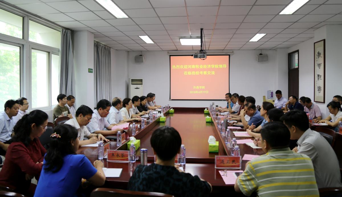 6月19日,河南牧业经济学院校长罗士喜、副校长张卫宪、陈艳、杨志清等一行来永利官网考察交流工作。党委书记闫纪建、院长赵继红会见了来访客人,双方进行了座谈交流。校领导郑直、崔斌、黄怡俐、高金星及学校相关部门、二级学院负责人参加了座谈交流。