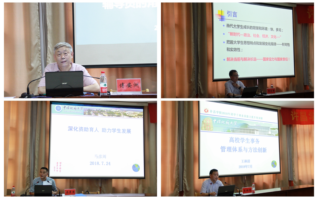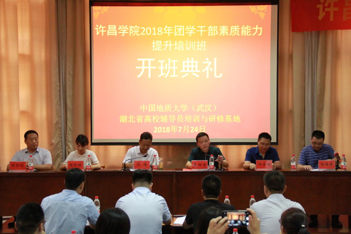 为深入学习贯彻习近平新时代中国特色社会主义思想和党的十九大精神,贯彻落实全国和全省高校思想政治工作会议要求,提升永利官网团学干部的思想政治理论水平和业务能力,7月24日至7月28日,永利官网2018年暑期团学干部素质能力培训班在湖北省辅导员培训与研修基地—中国地质大学(武汉)成功举办。校党委副书记孙海带队参加培训,学校学生工作部、团委、人事处等相关部门负责同志、各学院团总支书记和辅导员代表共计余60余人参加了本次培训。