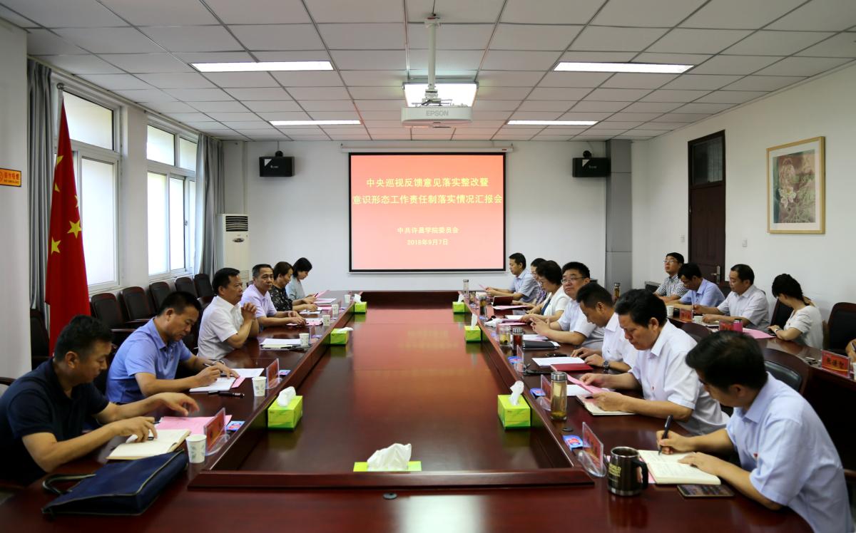 校党委书记闫纪建汇报了永利官网贯彻落实中央巡视河南关于意识形态工作责任制反馈意见整改工作的开展情况和2018年学校意识形态工作总体情况。闫书记说,在反馈意见整改工作中,校党委提高政治站位,及时学习传达上级会议精神,安排部署整改工作。坚持举一反三,结合学校实际,研究制定整改工作方案。加强组织实施,层层传导压力,确保整改工作落实落细落地。