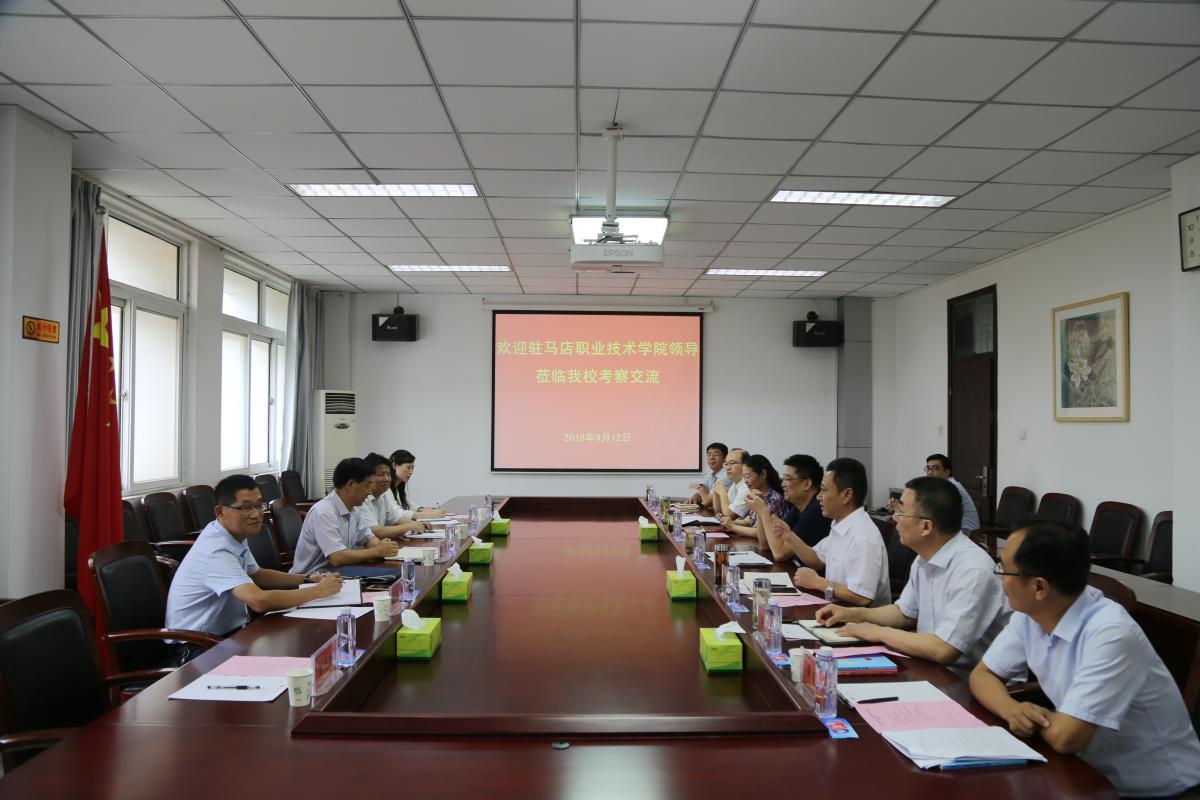 9月12日,驻马店职业技术学院党委书记宋大成、副书记刘贵文等一行5人来永利官网考察交流。永利官网党委书记闫纪建、副书记孙海会见了来访客人,党政办公室、党委组织部、党委宣传部、党委党校等部门负责同志参加了座谈交流。