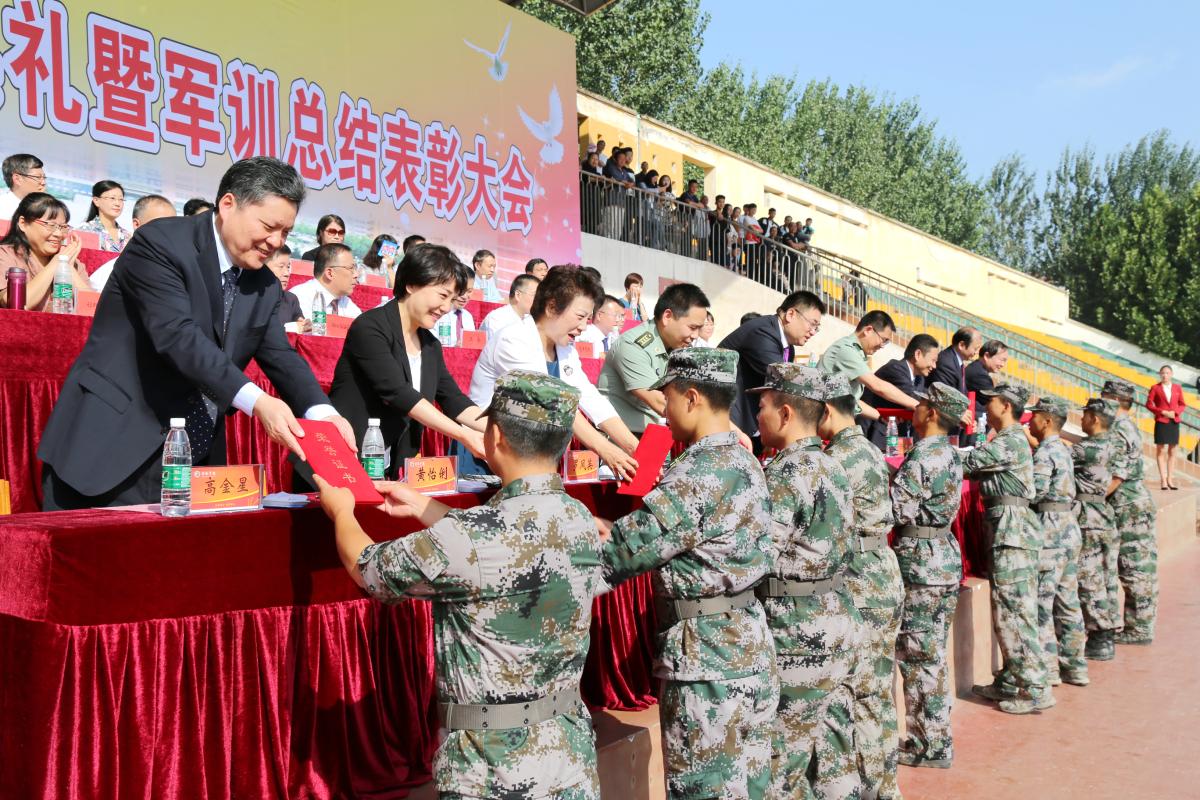 许昌军分区战备建设处处长陈福星对新生圆满完成军训任务表示祝贺。他希望同学们把军训成果尽快转化为努力学习、刻苦钻研的强大精神动力,进一步提升思想素质,锻炼意志品质,增强身体素质,努力把自己培养成为德智体美全面发展的社会主义建设者和接班人。