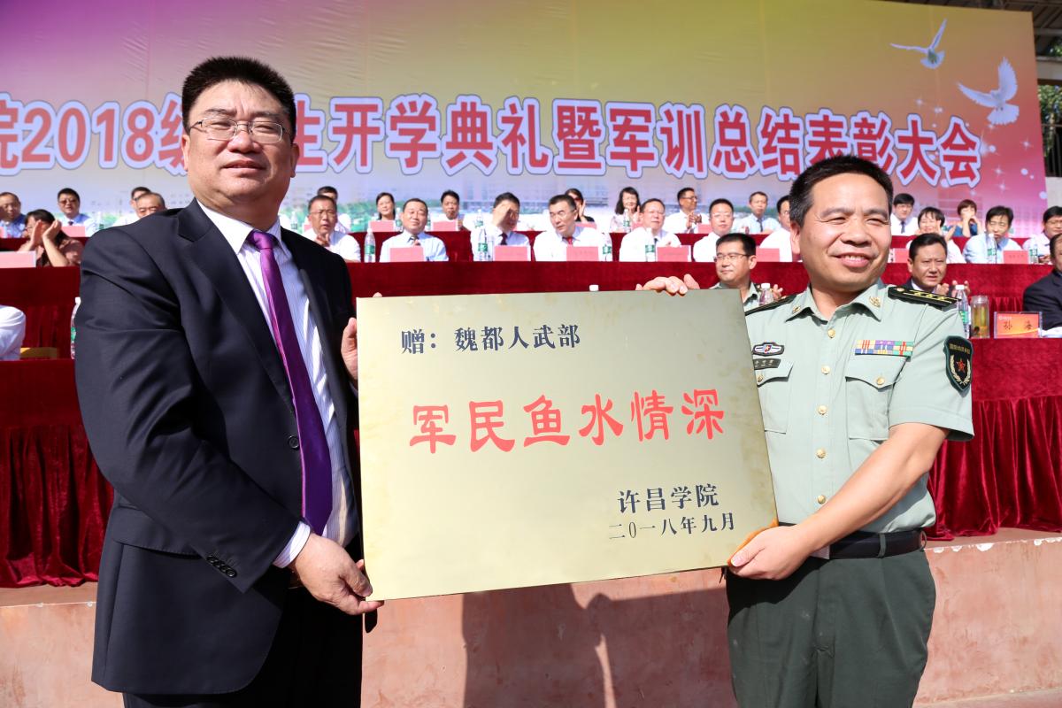 仪式上,闫纪建书记代表永利官网向魏都区武装部赠送了“军民鱼水情深”的纪念牌。