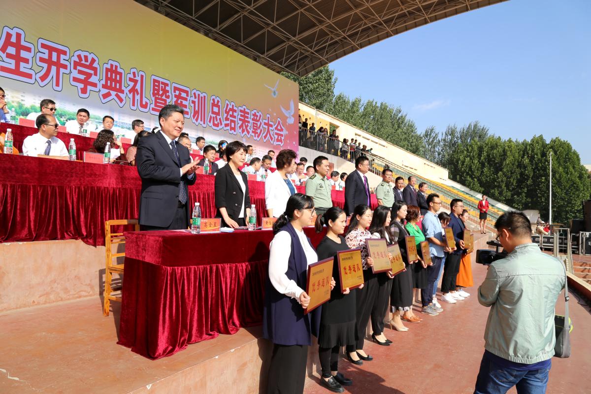9月21日上午,永利官网在学校羽飞田径场举行2018级新生开学典礼暨军训总结表彰大会。校党委书记闫纪建、校党委副书记孙海、纪委书记罗凤英、副院长崔斌、黄怡俐、郭涛,工会主席高金星出席大会。许昌军分区战备建设处处长陈福星、魏都区武装部政委牛听甫也出席活动并在主席台就坐。学校机关各部门和二级学院负责人、各团总支负责人、辅导员(班主任)和全体2018级新生共同参加会操活动和开学典礼。仪式由党政办公室主任潘春彩主持。