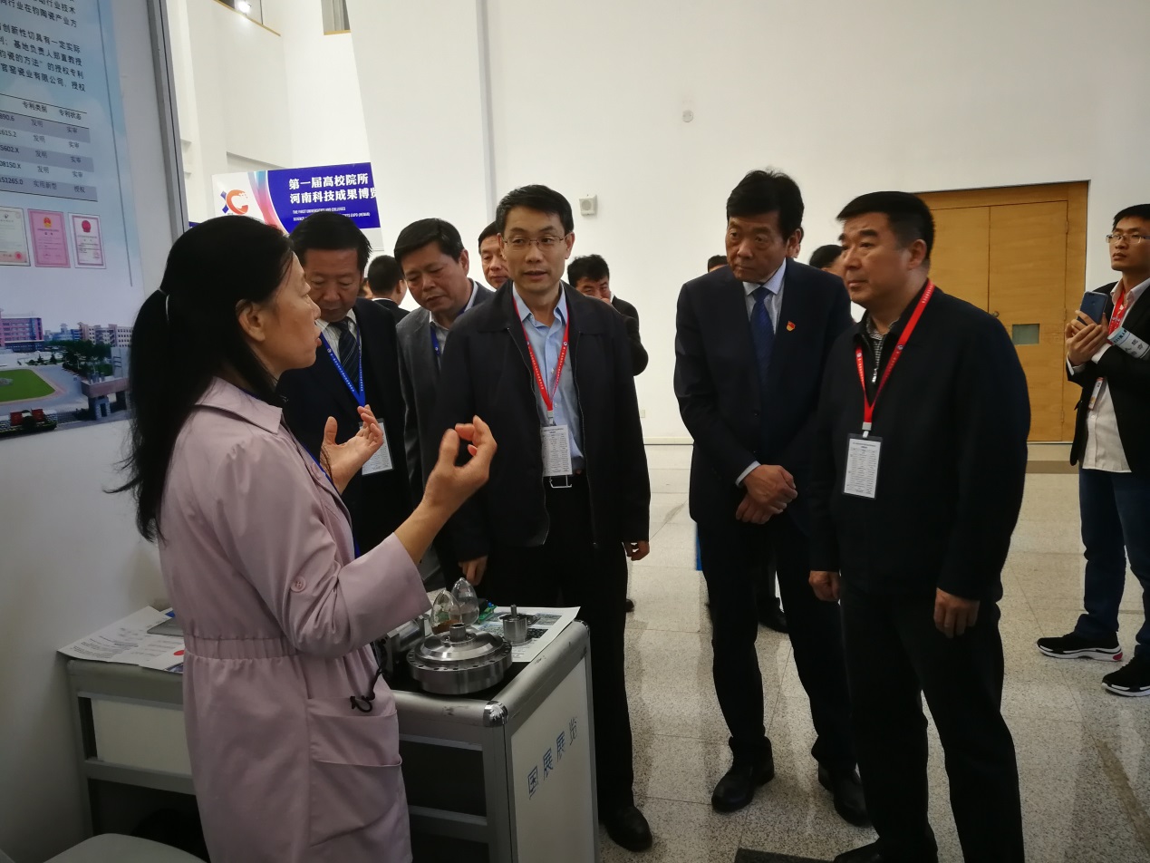 10月26日至27日,由河南省教育厅、河南省科技厅、新乡市人民政府共同主办,以“创新引领发展 协同融合共赢”为主题的第一届高校院所河南科技成果博览会(简称高博会)在新乡市举行。本次大会邀请了25位“两院”院士,吸引了来自美国、德国、乌克兰等国的36位大学负责人和业界专家,以及北京大学、清华大学、中国科学技术大学等近百位“双一流”高校的相关领导和科研院所、知名企业负责人参加。永利官网郑直副院长带领校地合作办公室及参展成果负责老师参加了此次大会。