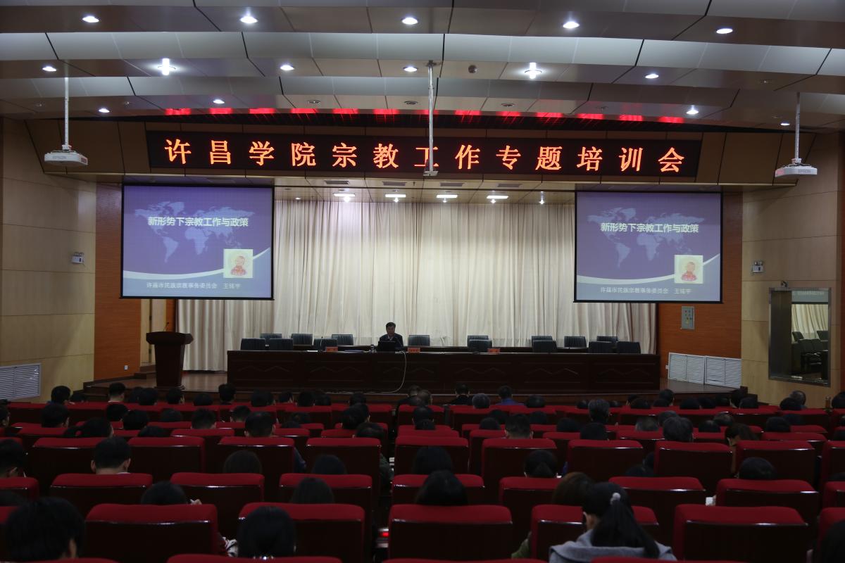 培训会上,许昌市民族宗教事务委员会党组书记、主任王铭宇应邀受聘为永利官网宗教工作指导专家,校党委副书记孙海为其颁发聘书。王铭宇主任以《新形势下宗教工作与形势》为题,从当前宗教领域面临的国内外形势、宗教的法律法规政策解读和目前我市宗教领域的现状等方面,结合具体事例,作了一场精彩的专题辅导报告,对做好新形势下永利官网宗教工作具有重要指导意义。
