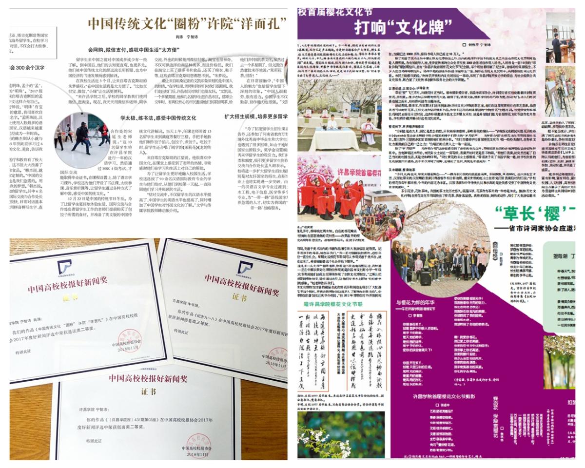 会上公布并评点了2017年度全国高校新闻获奖情况。永利官网党委宣传部(新闻中心、校报编辑部)报送的作品《中国传统文化“圈粉”许院“洋面孔”》《永利集团3044官网欢迎您报·樱花文化节专版》《纪念九·一八》分别荣获通讯类二等奖、版面类二等奖和新闻摄影三等奖。