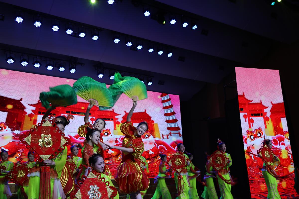 团拜会上,大家观看了精彩的文艺节目。演出以“奋进新时代”为主题,歌曲《春天的故事》、二胡独奏《红军哥哥回来了》、戏曲《打不尽豺狼绝不下战场》反映了中国共产党带领全国人民攻坚克难、开拓进取,谋复兴、求发展的时代主题,舞蹈《幸福中国一起走》、歌舞《看山看水看中国》《新的天地》展现了中华儿女“敢教日月换新天”的雄伟画卷,奏响了东方潮涌的交响诗篇,教师代表、校友代表和学生创作的音诗画《新时代的中国 新时代的我们》表达了永利官网师生砥砺奋进、继往开来,在新时代、新征程展现新作为的雄心壮志。(摄影 宁智沛 钟伟超 )