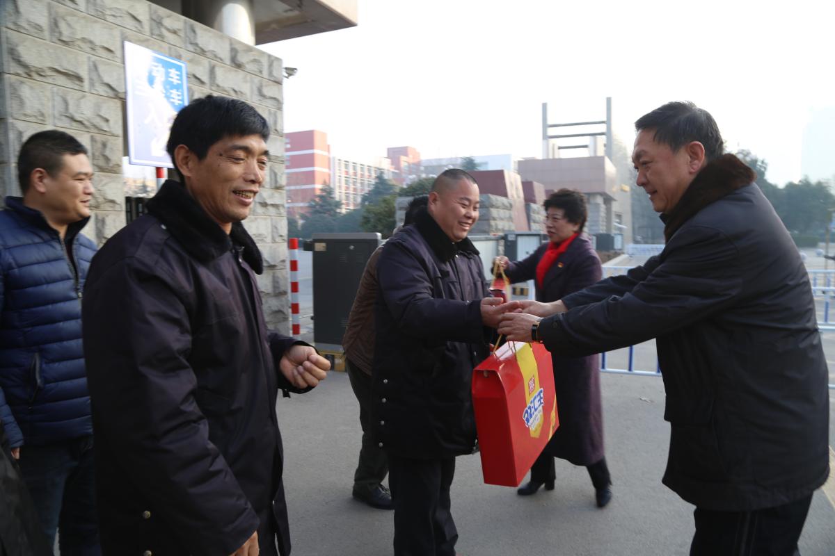 纪委书记罗凤英、副院长赵正风代表学校党委、行政向大家致以节日的问候,感谢他们为全校师生员工能够度过一个快乐祥和的春节所付出的辛勤劳动,叮嘱他们要注意安全,安排好春节期间的工作和生活,并送上新春祝福和慰问品。