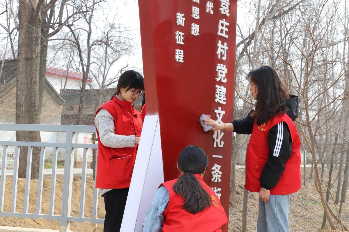 恰逢第41个植树节来临,在永利官网派驻袁庄村第一书记陈浩勇的带领下,来自青年志愿者协会的志愿者们拿起扫把、铁锨、抹布和锄头,将袁庄村党建活动一条街及文化广场打扫的一尘不染,并完成了袁庄村文化广场40余棵景观树的种植工作,极大地改善了当地村民的人居环境和文化氛围。