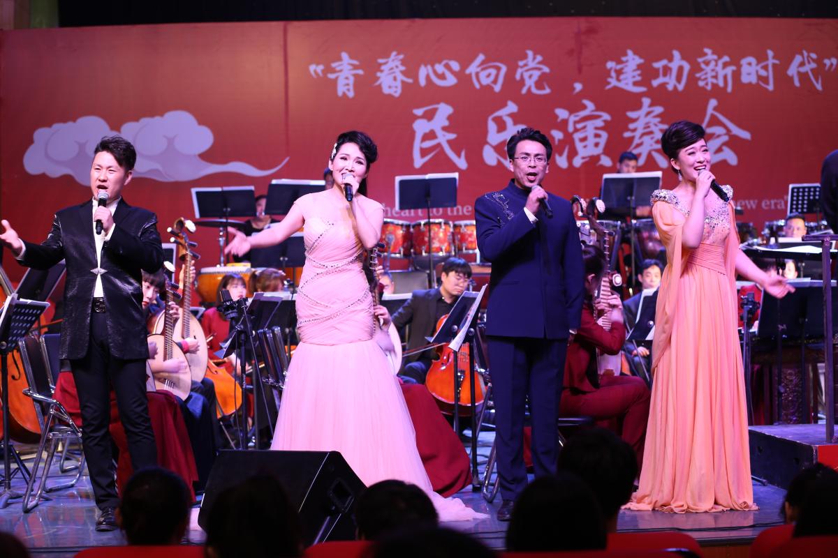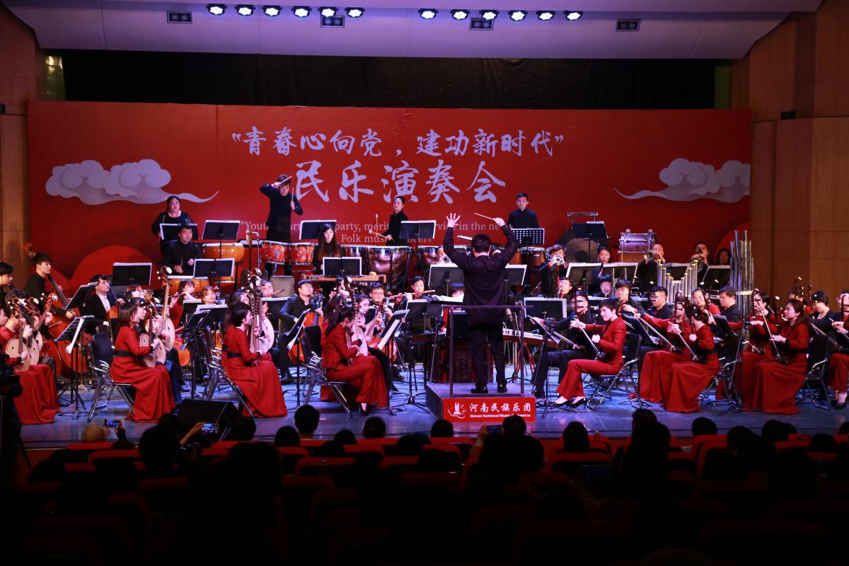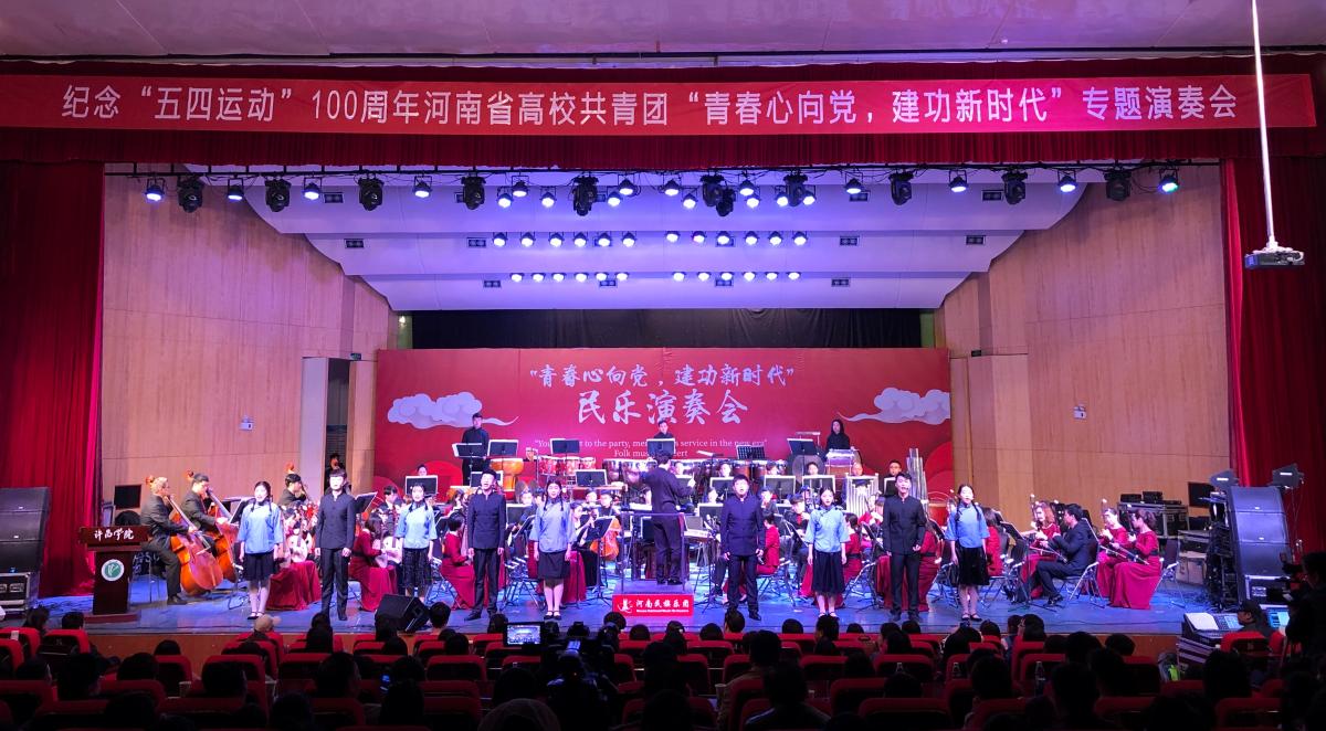 4月28日晚7点,由共青团河南省委主办,河南民族乐团和10所高校共同承办的河南省高校共青团“青春心向党·建功新时代”专题民乐演奏会首场演出在永利官网音乐厅圆满举行。团省委副书记王笃波、永利官网工会主席高金星、团省委学校部部长陈勇、副部长许彤以及党委宣传部、团委、音乐舞蹈学院主要负责人出席活动,300余名师生代表共同欣赏了现场演奏会。