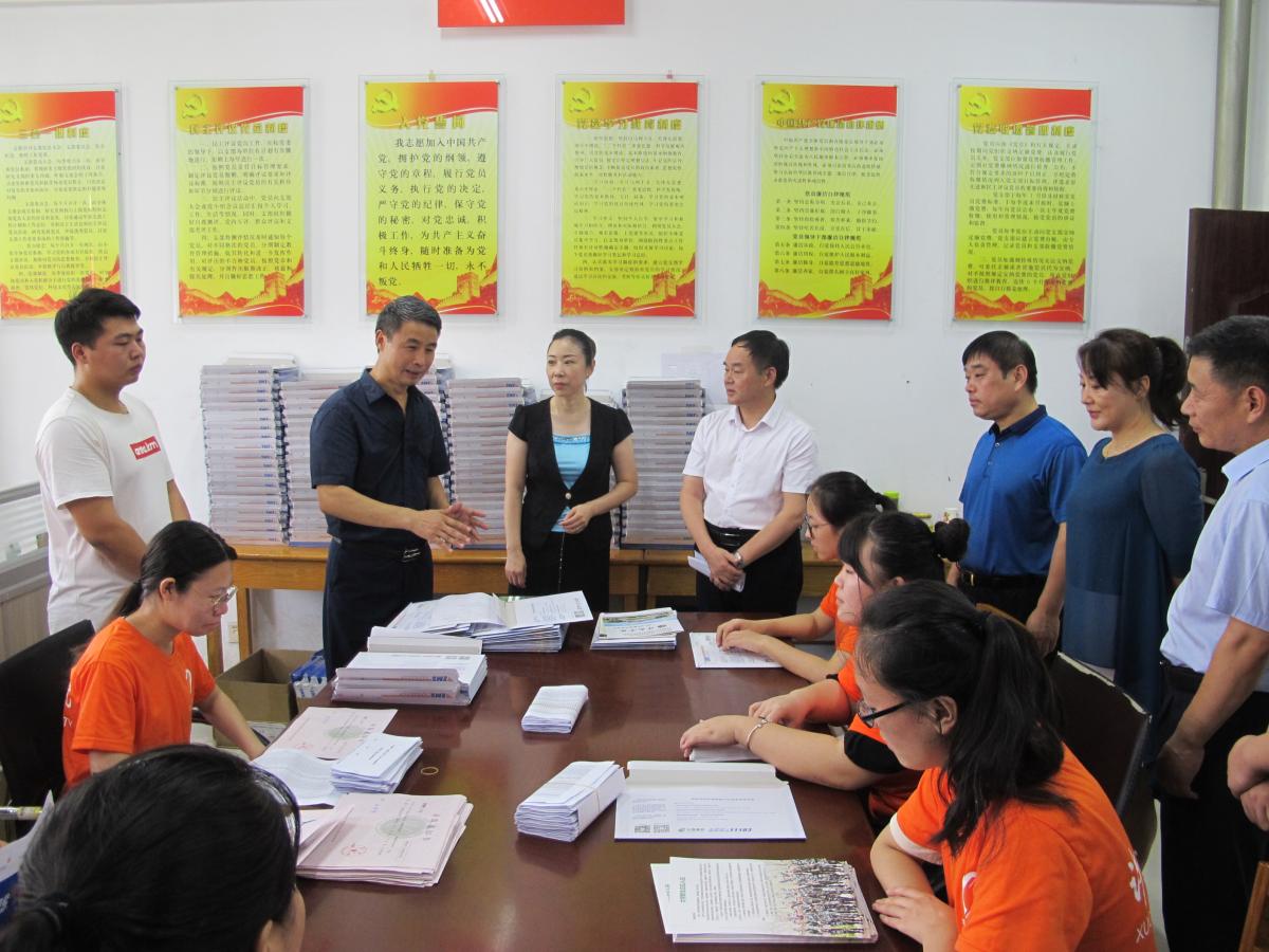7月23日上午,院长岳修峰、许昌市邮政公司总经理王俊玲等一行,到录取通知书封装现场,检查指导新生录取通知书寄递工作。
