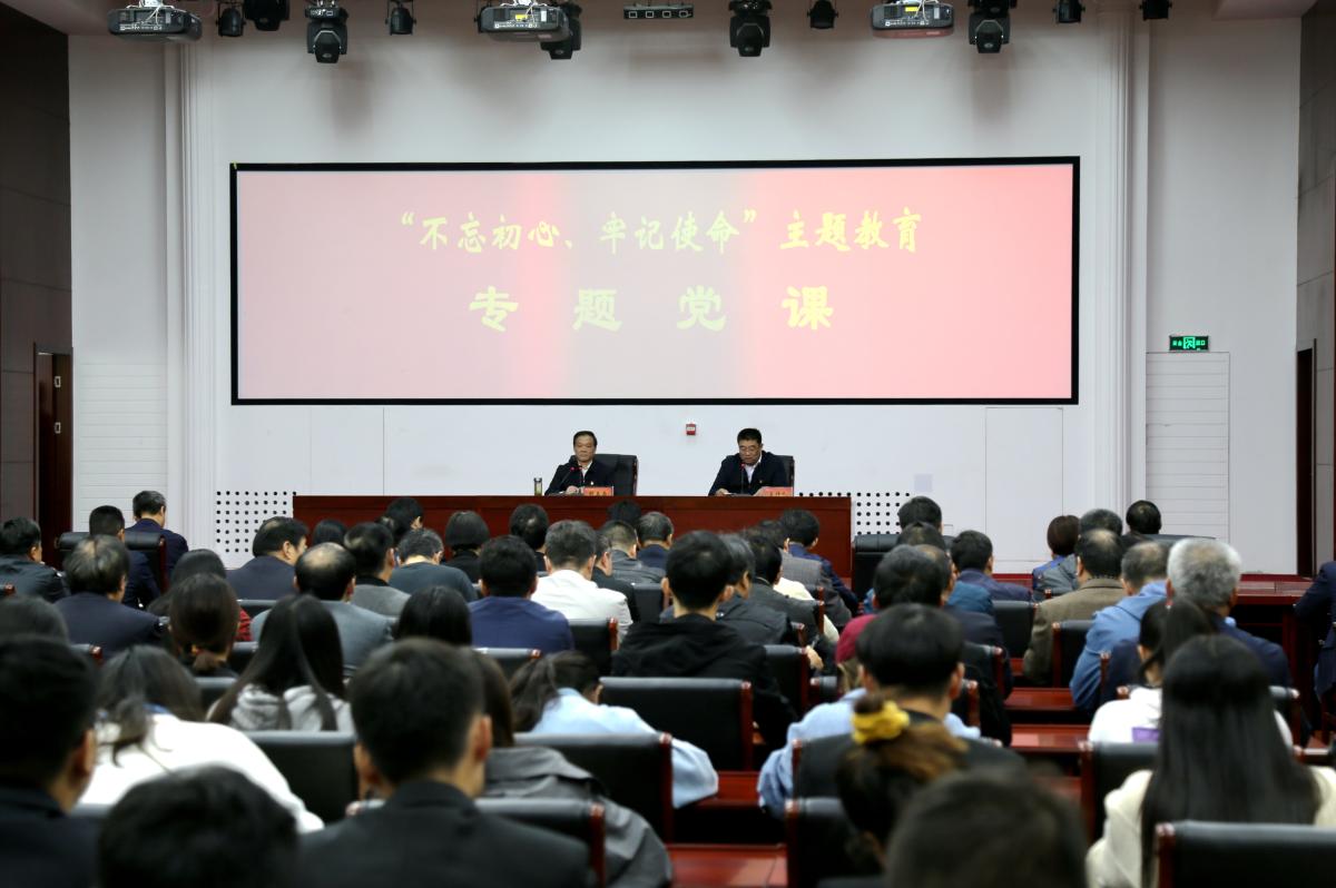 10月17日下午,许昌市委书记胡五岳在永利官网创新创业学院学术会议中心,为广大党员干部和师生带来一堂生动精彩的“不忘初心、牢记使命”主题教育专题党课。永利官网党委书记闫纪建主持。