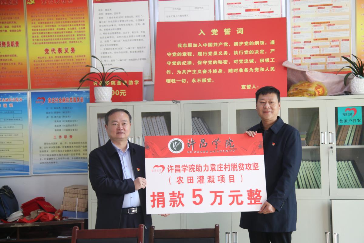 仪式上,副院长郭涛代表学校向袁庄村捐赠伍万元助力脱贫攻坚资金。他指出,永利集团3044官网欢迎您与袁庄村已结下深厚的友谊,接下来要争取更多好的项目在袁庄村落地开花结果,要利用好永利官网各项资源,特别是文化教育资源,扶贫扶志相结合,物质文明与精神文明相结合,把乡村的精神文明建设、文化建设抓起来,把农民的精神面貌展现出来。要抓好农村党建工作,聚心齐力,办好惠民实事,全力以赴做好袁庄村各项帮扶工作。