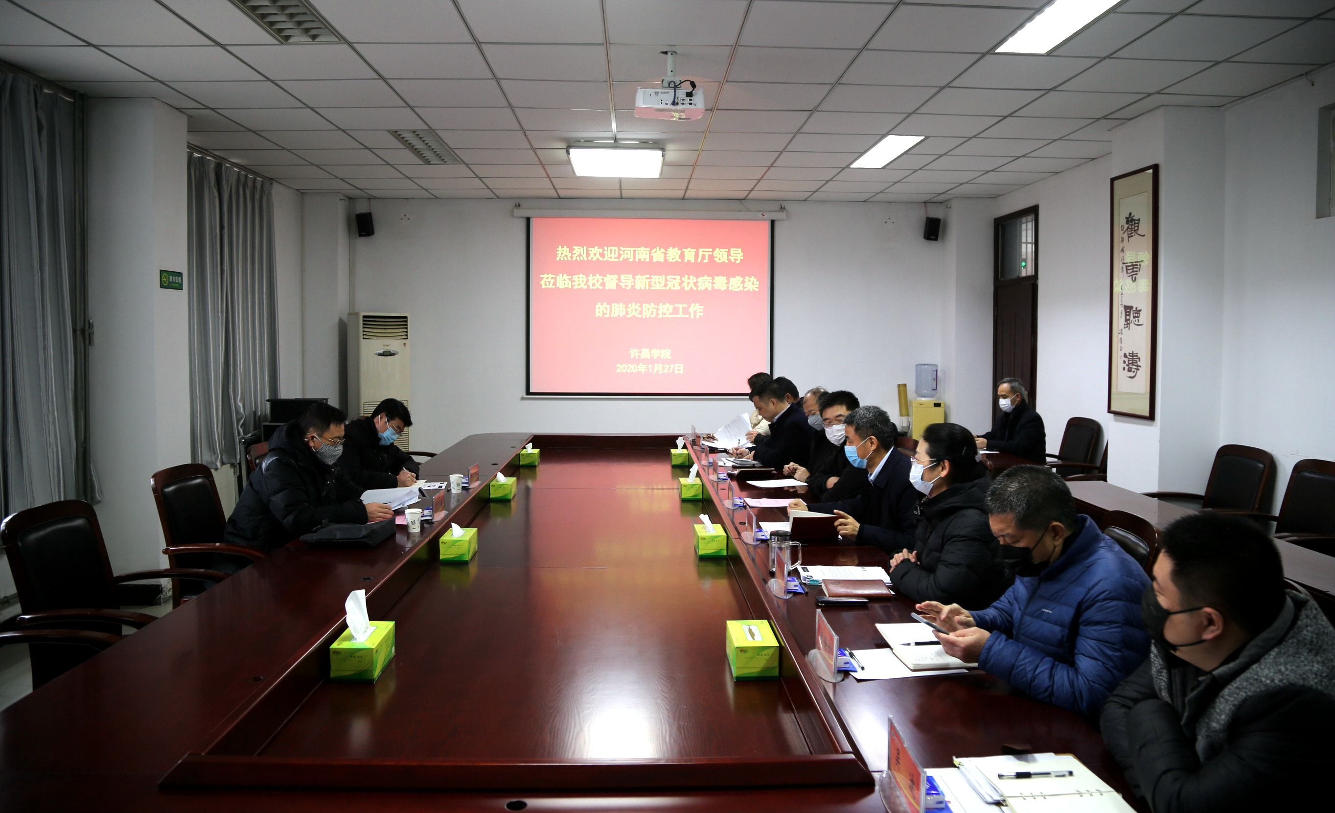 1月27日,省高校工委专职委员何秀敏,省教育厅发规处调研员胡万欣到永利官网,督导调研新型冠状病毒感染的肺炎疫情防控工作。校党委书记闫纪建、院长岳修峰、副院长崔斌,相关部门负责同志参加会议。