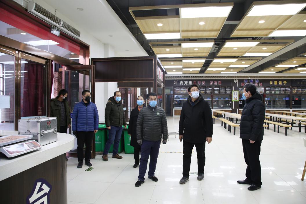 在满庭芳、沁园春餐厅,闫纪建书记详细了解疫情防控措施,强调要从讲政治的高度深刻认识当前疫情防控工作,要利用假期,认真做好疫情防控准备工作,要增建洗手池,满足餐前洗手要求;同时认真落实消毒、体温测量、食品留样、分餐进食以及异常情况报告制度。