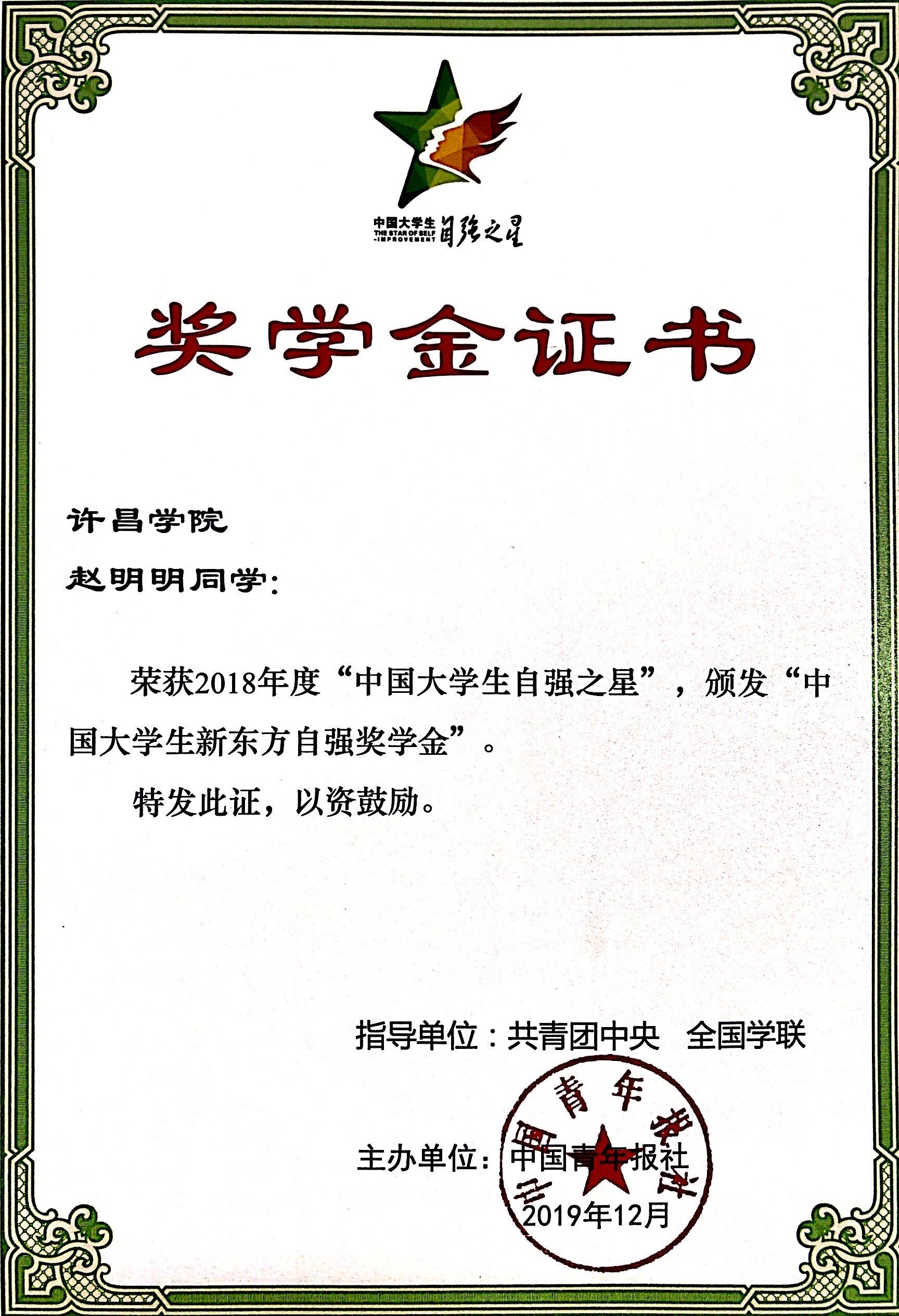 近日,由共青团中央、全国学联联合主办的2018年度寻访“中国大学生自强之星”活动评选结果揭晓,永利官网信息工程学院谢宇慧、数学与统计学院赵明明两名同学,经学校推荐、省级初评、全国评审等环节,双双荣获“中国大学生自强之星”称号,并获得“中国大学生新东方自强奖学金”。