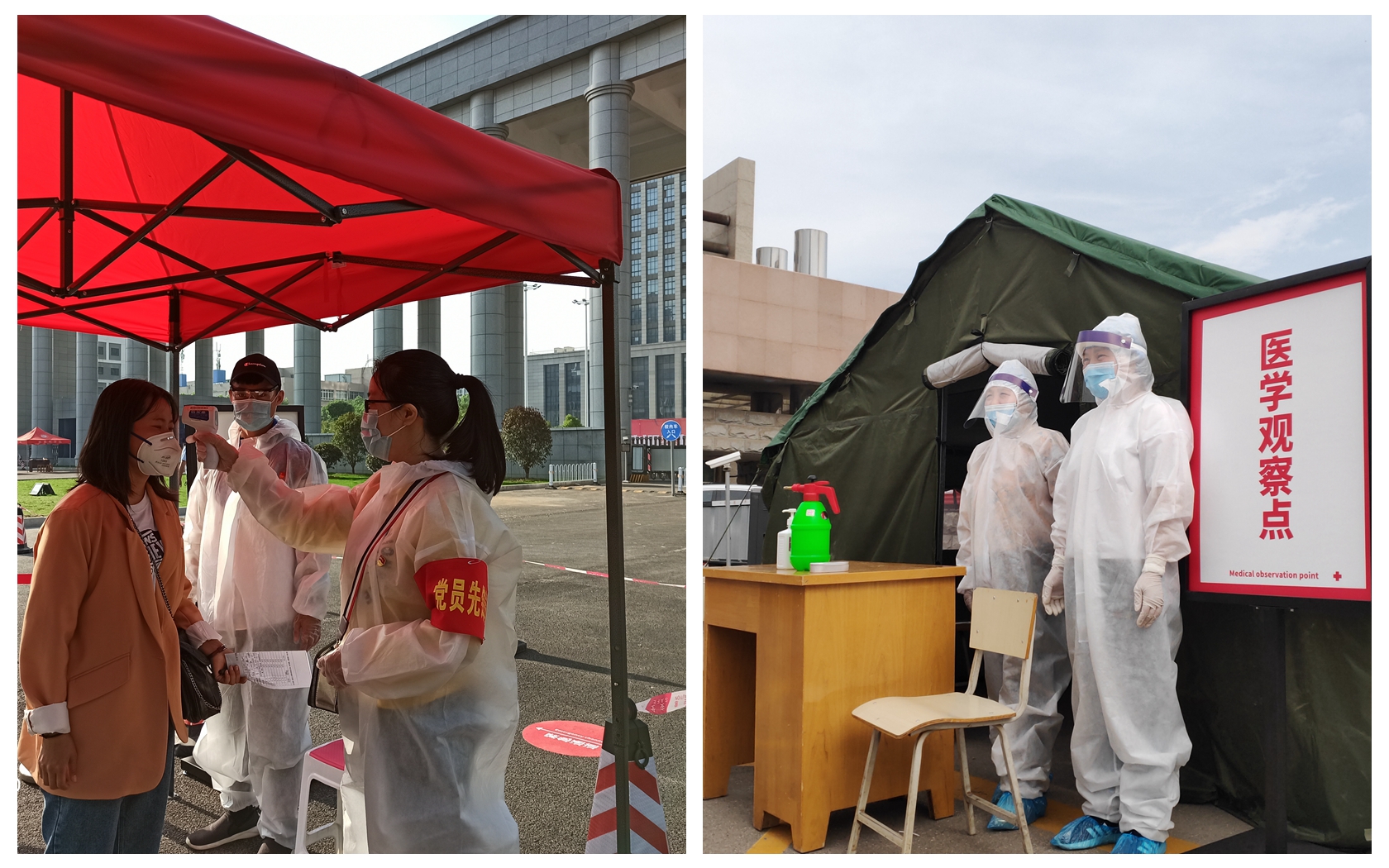 学校提前一周从机关部门、二级学院和教辅单位的党员干部中,遴选出125名志愿者作为学生返校报到服务点“党员先锋岗”人员进行了专门的培训并成立了4个临时党员先锋岗党支部,分别在测温点负责返校学生体温检测,在消毒区返校学生及携带行李进行工作,在等候区做好秩序维护、检查学生防护措施,在高铁站、火车站(汽车站)为返校学生检测登车前体温、消杀行李和协调车辆,并跟随乘车返校学生进行信息登记、测温和车辆消杀。