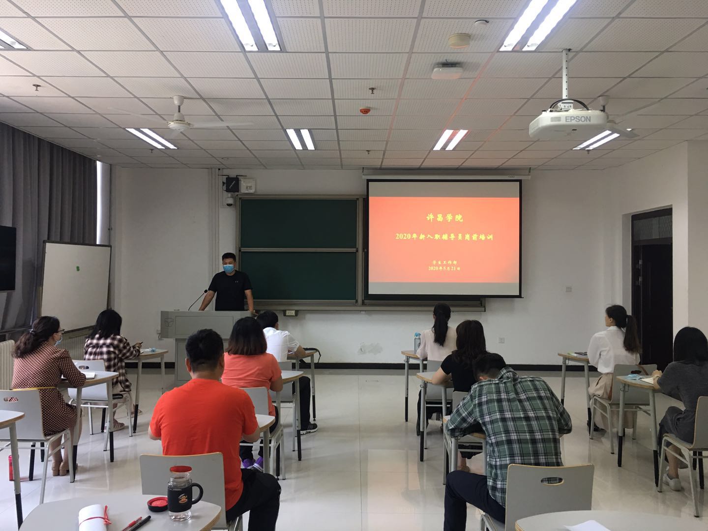为深入贯彻落实全国高校思想政治工作会议精神,切实提升新入职辅导员政治素质和业务能力,5月21日至5月22日,永利官网组织举办了2020年新入职辅导员岗前培训。各学院新入职的14位辅导员参加了本次培训。