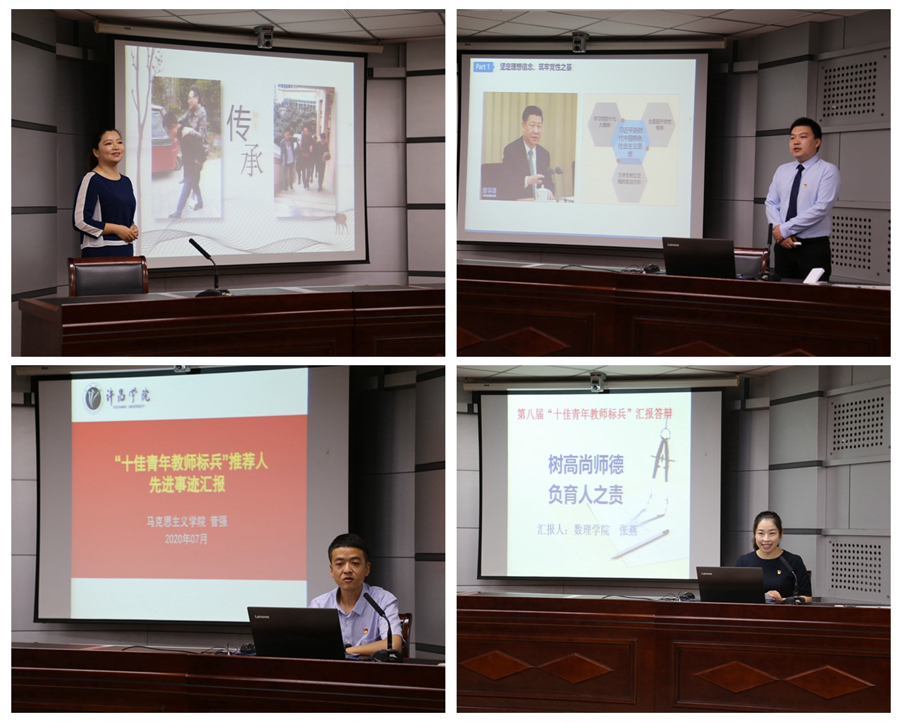答辩会上,24名青年教师就近年来的教书育人工作进行了汇报,并结合自身工作经历,生动讲述了对教师职业的深度认同、对教书育人神圣职责的深刻理解,他们通过讲述平凡工作中的感人故事、讲台上下的成长与收获,表达了对教育事业的炽热情感和对学生的无私关爱。孙海副书记在总结讲话中指出,广大青年教师在平凡的岗位上做出了不平凡的业绩,展示了不平凡的育人经历,体现了新时代青年教师的魅力担当。他指出,广大青年教师要牢记习近平总书记提出的“四有”好老师标准,为人师表,关爱学生,做到“两心两力”,牢固树立教书育人的职业理想,对待学生要有爱心、有责任心,要以学识魅力和人格魅力教育、感染、引导青年学生。